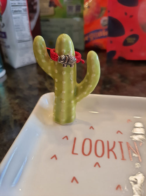 925S Sterling Silver Lucky Elephant Red String Shamballa Ring